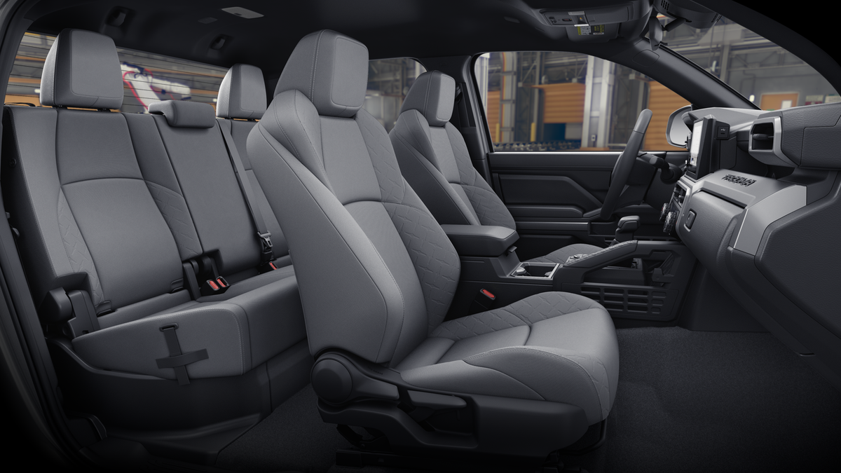 - Fabric-trimmed seats; 6-way manually adjustable driver and front passenger seats with 2-way power-adjustable lumbar support on driver's seat only